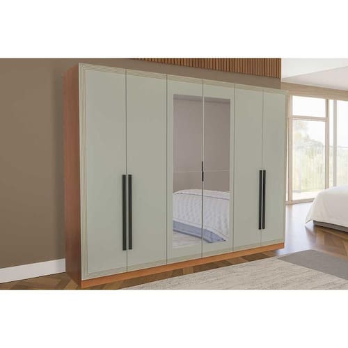 Guarda Roupa 6 Portas (2 c/ Espelho) e 4 Gavetas Valência Freijo/Verde - Politorno - Blush