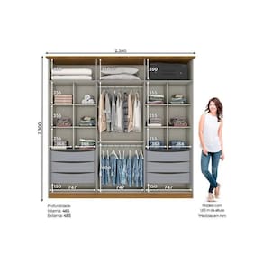 Dimensões(Cm): Comnto(Profundidade): 235cm x Largura: 49cm x Altura: 230cm Material de Estrutura - MDF/MDP Tipo de Pintura - Ultravioleta Tipo de Acabamento da Pintura - Semi Brilho Diferenciais Guarda Roupas - Calceiro Tipo de Cabideiro - Aéreo - De Piso Material dos Cabideiros - Cabideira Metálico Tipo de Corrediça - c/ Corrediças Telescópicas Quantidade de Gavetas - 6 Gavetas Diferenciais das Gavetas - c/ Detalhe Usinado