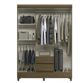 Suas amplas prateleiras internas permitem acomodar as roupas dobradas com muita organização, além de caixas, sapatos, decoração, etc.