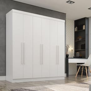 Organize e encontre com mais facilidade suas roupas preferidas com o auxílio deste atraente Guarda-Roupa Recife. Confeccionado com materiais de qualidade e resistência, ele é a opção mais acertada para deixar seu dormitório muito mais arrumado e convidativo. Acabamento da Prateleira: Pintura UV Escala de Brilho da Prateleira: Semi-Brilho Possui Cabideiros: 02 Acabamento da Gaveta: Pintura UV Possui Organizador de Gaveta: Não Acabamento da Porta: Pintura UV Escala de Brilho da Porta: Brilhante Material do Puxador da Porta: MDF Ambiente Principal: Quarto Complexidade da Montagem: Média: pode ser montado por mais de uma pessoa e/ou necessite de maior conhecimento para montagem Cor: Branco Cor do Produto: Branco Cor Interna: Branco Escala de Brilho: Brilhante Gaveta com Chave: Não Itens Inclusos: 1 Guarda-Roupa, Kit Ferragens e Manual de Montagem Linha ou Coleção: Recife Manual de Montagem e Instalação: https://cdn2.madeiramadeira.com.br/atributo/salleto/1590921-roupeiro-recife-6-portas.pdf Material da Gaveta: MDP/HDF Material da Porta: MDP Material da Prateleira: MDP Material Principal: MDP modular: Não Necessita Montagem: Sim Origem do Produto: Nacional Peso: 94 kg Peso Máximo por Gaveta: 5 kg Peso Máximo por Prateleira: 7 kg Possui Calceiros: Não Possui Espelho: Não Possui Pés: Não Possui Portas: Sim Possui Prateleiras: Sim Quantidade de Gavetas: 02 Gavetas Quantidade de Prateleiras: 07 Prateleiras Recomendações de Uso, Manutenção e Limpeza: Pano levemente umedecido e pano seco. Não utilizar produtos de limpeza Sistema de Montagem: Parafusos Tipo de Corrediça da Gaveta: Metálica Telescópica Tipo de Dobradiça/Corrediça da Porta: Aço Tipo de Gaveta: Interna Tipo de Guarda-Roupa: Casal Tipo de Puxador da Gaveta: Não Possui Tipo de Puxador da Porta: Externo