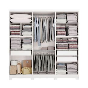 Caracteristicas do produto: Modelo: J559-CN Matéria-prima: MDP Revestimento: Pintura Touch Acabamento: Fosco Portas: 06 Portas de bater Trilhos: Metálicos Dobradiças: Metálicas Gavetas: 03 gavetas Corrediças: Telescópicas Puxadores: 06 puxadores de Polipropileno Cabideiros: 02 cabideiros Pés :Rodapé Dimensões internas das gavetas: -LxAxP- 61,7 cm x 10,5 cm x 40 cm