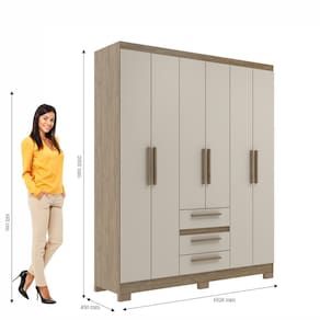 Um guarda-roupa essencial para você organizar suas roupas. Além de lingo e elegante, com o puxadordiferenciado com personalidade única. São 6 portas, 3 gavetas, cabideiros, prateleiras e maleiro, tudo para deixar o seu espaço organizado e lindo!