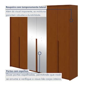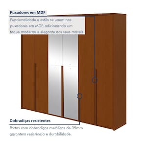 O Guarda-Roupa 6 Portas e 4 Gavetas com Espelho Style combina sofisticação e funcionalidade para transformar seu quarto. Seu design moderno e espaçoso permite organizar roupas, calçados e acessórios de forma prática e eficiente. O espelho integrado valoriza o ambiente, conforto amplitude e elegância. As gavetas amplas e os compartimentos bem distribuídos garantem mais praticidade no dia a dia. Produzido 100% em MDF, ele oferece resistência e durabilidade para compor sua decoração com estilo e qualidade.