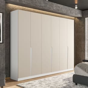 O guarda-roupa 6 portas 4 gavetas da linha Porto, da Politorno Móveis, é a escolha ideal para quem busca elegância, modernidade e amplo espaço de armazenamento. Com 200,4 cm de altura, 242 cm de largura e 46 cm de profundidade, oferece excelente organização para roupas, acessórios e calçados. Produzido em MDP/MDF, conta com acabamento em pintura UV e FF, garantindo resistência e durabilidade. Suas gavetas possuem corrediças telescópicas para um deslizamento suave, enquanto os puxadores embutidos conferem um visual clean e sofisticado. Funcional e de alta qualidade, esse guarda-roupa transforma o ambiente com beleza e praticidade. Acabamento da Prateleira: Pintura UV Escala de Brilho da Prateleira: Semi-Fosco Possui Cabideiros: Sim Acabamento da Gaveta: Pintura UV Escala de Brilho da Gaveta: Semi-Fosco Possui Organizador de Gaveta: Não Acabamento da Porta: Pintura UV Escala de Brilho da Porta: Semi-Fosco Altura dos Pés: 10 cm Altura Máxima dos Pés: 10.0000 Ambiente Principal: Quarto codigo_ean: 7900288092564 Complexidade da Montagem: Média: pode ser montado por mais de uma pessoa e/ou necessite de maior conhecimento para montagem Cor: Branco/Creme Cor do Produto: Branco/Creme Cor do Puxador: Branco Cor Interna: Branco Escala de Brilho: Semi-Fosco Espessura da Estrutura (mm): 15 mm Espessura das Portas (mm): 15 mm Espessura das Prateleiras (mm): 15 mm Espessura do Fundo (mm): 3 mm Espessura do Fundo das Gavetas (mm): 9 mm Gaveta com Chave: Não Itens Inclusos: 1 Guarda-Roupa, +1 Kit de Ferragens,+1 Manual de Montagem +1 Termo de Garantia Linha ou Coleção: Porto Manual de Montagem e Instalação: https://product-hub-prd.madeiramadeira.com.br/981715/documents/2ebf8556-ed93-4e02-a388-11f0a8b99cb92751897622417423280300102.pdf Marca: Politorno Material da Gaveta: MDF/MDP Material da Porta: MDF/MDP Material da Prateleira: MDF/MDP Material dos Pés: MDF Material Principal: MDF/MDP modular: Não Necessita Montagem: Sim Nicho com Cabideiro: Não Origem do Produto: Nacional Peso: 108,8 kg Peso Máximo por Gaveta: 3 kg Peso Máximo por Prateleira: 5 kg Porta Janelada: Não Possui Calceiros: Não Possui Espelho: Não Possui Pés: Rodapé Possui Portas: Sim Possui Prateleiras: Sim Produto Montado: Sim Quantidade de Cabideiros: 04 Cabideiros Quantidade de Gavetas: 04 Gavetas Quantidade de Prateleiras: 04 Prateleiras Recomendações de Uso, Manutenção e Limpeza: Utilize um pano macio umedecido com água e sabão neutro, seguido de pano seco. Não utilize produtos químicos ou abrasivos para limpeza, pois estes danificam o revestimento do móvel. Sistema de Montagem: Cavilha, Parafuso, Minifix e prego Tipo de Corrediça da Gaveta: Metálica Telescópica Tipo de Dobradiça/Corrediça da Porta: Metálica Tipo de Gaveta: Interna Tipo de Guarda-Roupa: Casal Tipo de Puxador da Gaveta: Não Possui Tipo de Puxador da Porta: Embutido undefined: 981721
