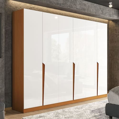 O guarda-roupa 6 portas 4 gavetas da linha Porto, da Politorno Móveis, é a escolha ideal para quem busca elegância, modernidade e amplo espaço de armazenamento. Com 200,4 cm de altura, 242 cm de largura e 46 cm de profundidade, oferece excelente organização para roupas, acessórios e calçados. Produzido em MDP/MDF, conta com acabamento em pintura UV e FF, garantindo resistência e durabilidade. Suas gavetas possuem corrediças telescópicas para um deslizamento suave, enquanto os puxadores embutidos conferem um visual clean e sofisticado. Funcional e de alta qualidade, esse guarda-roupa transforma o ambiente com beleza e praticidade. Acabamento da Prateleira: Pintura UV Escala de Brilho da Prateleira: Semi-Fosco Possui Cabideiros: Sim Acabamento da Gaveta: Pintura UV Escala de Brilho da Gaveta: Semi-Fosco Possui Organizador de Gaveta: Não Acabamento da Porta: Pintura UV Escala de Brilho da Porta: Semi-Fosco Altura dos Pés: 10 cm Altura Máxima dos Pés: 10.0000 Ambiente Principal: Quarto codigo_ean: 7900288092885 Complexidade da Montagem: Média: pode ser montado por mais de uma pessoa e/ou necessite de maior conhecimento para montagem Cor: Freijó/Branco Cor da Porta: Branco Cor do Produto: Freijó/Branco Cor do Puxador: Cinamomo Cor Interna: Freijó Escala de Brilho: Semi-Fosco Espessura da Estrutura (mm): 15 mm Espessura das Portas (mm): 15 mm Espessura das Prateleiras (mm): 15 mm Espessura do Fundo (mm): 3 mm Espessura do Fundo das Gavetas (mm): 9 mm Gaveta com Chave: Não Itens Inclusos: 1 Guarda-Roupa,+1 Kit de Ferragens,+1 Manual de Montagem +1 Termo de Garantia Linha ou Coleção: Porto Manual de Montagem e Instalação: https://product-hub-prd.madeiramadeira.com.br/981717/documents/1a686a18-ea58-4505-ad67-d0eecc5338a92751909622417423284201945.pdf Marca: Politorno Material da Gaveta: MDF/MDP Material da Porta: MDF/MDP Material da Prateleira: MDF/MDP Material dos Pés: MDF Material Principal: MDF/MDP modular: Não Necessita Montagem: Sim Nicho com Cabideiro: Não Origem do Produto: Nacional Peso: 108,8 kg Peso Máximo por Gaveta: 3 kg Peso Máximo por Prateleira: 5 kg Porta Janelada: Não Possui Calceiros: Não Possui Espelho: Não Possui Pés: Rodapé Possui Portas: Sim Possui Prateleiras: Sim Produto Montado: Sim Quantidade de Cabideiros: 04 Cabideiros Quantidade de Gavetas: 04 Gavetas Quantidade de Prateleiras: 04 Prateleiras Recomendações de Uso, Manutenção e Limpeza: Utilize um pano macio umedecido com água e sabão neutro, seguido de pano seco. Não utilize produtos químicos ou abrasivos para limpeza, pois estes danificam o revestimento do móvel. Sistema de Montagem: Cavilha, Parafuso, Minifix e prego Tipo de Corrediça da Gaveta: Metálica Telescópica Tipo de Dobradiça/Corrediça da Porta: Metálica Tipo de Gaveta: Interna Tipo de Guarda-Roupa: Casal Tipo de Puxador da Gaveta: Não Possui Tipo de Puxador da Porta: Embutido undefined: 981721