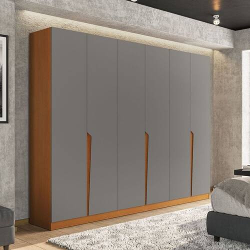 O guarda-roupa 6 portas 4 gavetas da linha Porto, da Politorno Móveis, é a escolha ideal para quem busca elegância, modernidade e amplo espaço de armazenamento. Com 200,4 cm de altura, 242 cm de largura e 46 cm de profundidade, oferece excelente organização para roupas, acessórios e calçados. Produzido em MDP/MDF, conta com acabamento em pintura UV e FF, garantindo resistência e durabilidade. Suas gavetas possuem corrediças telescópicas para um deslizamento suave, enquanto os puxadores embutidos conferem um visual clean e sofisticado. Funcional e de alta qualidade, esse guarda-roupa transforma o ambiente com beleza e praticidade. Acabamento da Prateleira: Pintura UV Escala de Brilho da Prateleira: Semi-Fosco Possui Cabideiros: Sim Acabamento da Gaveta: Pintura UV Escala de Brilho da Gaveta: Semi-Fosco Possui Organizador de Gaveta: Não Acabamento da Porta: Pintura UV Escala de Brilho da Porta: Semi-Fosco Altura dos Pés: 10 cm Altura Máxima dos Pés: 10.0000 Ambiente Principal: Quarto codigo_ean: 7900288092991 Complexidade da Montagem: Média: pode ser montado por mais de uma pessoa e/ou necessite de maior conhecimento para montagem Cor: Freijó/Cinza Cor do Produto: Freijó/Cinza Cor do Puxador: Cinamomo Cor Interna: Freijó Escala de Brilho: Semi-Fosco Espessura da Estrutura (mm): 15 mm Espessura das Portas (mm): 15 mm Espessura das Prateleiras (mm): 15 mm Espessura do Fundo (mm): 3 mm Espessura do Fundo das Gavetas (mm): 9 mm Gaveta com Chave: Não Itens Inclusos: 1 Guarda-Roupa, +1 Kit de Ferragens, +1 Manual de Montagem, +1 Termo de Garantia Linha ou Coleção: Porto Manual de Montagem e Instalação: https://product-hub-prd.madeiramadeira.com.br/981721/documents/09b3f3a4-343d-4e38-bea8-7e9fbae3c2f62751944622417423290846025.pdf Marca: Politorno Material da Gaveta: MDF/MDP Material da Porta: MDF/MDP Material da Prateleira: MDF/MDP Material dos Pés: MDF Material Principal: MDF/MDP modular: Não Necessita Montagem: Sim Nicho com Cabideiro: Não Origem do Produto: Nacional Peso: 108,8 kg Peso Máximo por Gaveta: 3 kg Peso Máximo por Prateleira: 5 kg Porta Janelada: Não Possui Calceiros: Não Possui Espelho: Não Possui Pés: Rodapé Possui Portas: Sim Possui Prateleiras: Sim Produto Montado: Sim Quantidade de Cabideiros: 04 Cabideiros Quantidade de Gavetas: 04 Gavetas Quantidade de Prateleiras: 04 Prateleiras Recomendações de Uso, Manutenção e Limpeza: Utilize um pano macio umedecido com água e sabão neutro, seguido de pano seco. Não utilize produtos químicos ou abrasivos para limpeza, pois estes danificam o revestimento do móvel. Sistema de Montagem: Cavilha, Parafuso, Minifix e prego Tipo de Corrediça da Gaveta: Metálica Telescópica Tipo de Dobradiça/Corrediça da Porta: Metálica Tipo de Gaveta: Interna Tipo de Guarda-Roupa: Casal Tipo de Puxador da Gaveta: Não Possui Tipo de Puxador da Porta: Embutido