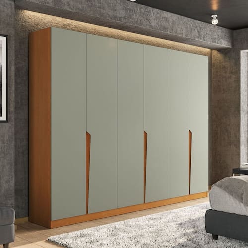O guarda-roupa 6 portas 4 gavetas da linha Porto, da Politorno Móveis, é a escolha ideal para quem busca elegância, modernidade e amplo espaço de armazenamento. Com 200,4 cm de altura, 242 cm de largura e 46 cm de profundidade, oferece excelente organização para roupas, acessórios e calçados. Produzido em MDP/MDF, conta com acabamento em pintura UV e FF, garantindo resistência e durabilidade. Suas gavetas possuem corrediças telescópicas para um deslizamento suave, enquanto os puxadores embutidos conferem um visual clean e sofisticado. Funcional e de alta qualidade, esse guarda-roupa transforma o ambiente com beleza e praticidade. Acabamento da Prateleira: Pintura UV Escala de Brilho da Prateleira: Semi-Fosco Possui Cabideiros: Sim Acabamento da Gaveta: Pintura UV Escala de Brilho da Gaveta: Semi-Fosco Possui Organizador de Gaveta: Não Acabamento da Porta: Pintura UV Escala de Brilho da Porta: Semi-Fosco Altura dos Pés: 10 cm Altura Máxima dos Pés: 10.0000 Ambiente Principal: Quarto codigo_ean: 7900288092946 Complexidade da Montagem: Média: pode ser montado por mais de uma pessoa e/ou necessite de maior conhecimento para montagem Cor: Freijó/Verde Cor do Produto: Freijó/Verde Cor do Puxador: Cinamomo Cor Interna: Freijó Escala de Brilho: Semi-Fosco Espessura da Estrutura (mm): 15 mm Espessura das Portas (mm): 15 mm Espessura das Prateleiras (mm): 15 mm Espessura do Fundo (mm): 3 mm Espessura do Fundo das Gavetas (mm): 9 mm Gaveta com Chave: Não Itens Inclusos: 1 Guarda-Roupa, +1 Kit de Ferragens, +1 Manual de Montagem, +1 Termo de Garantia Linha ou Coleção: Porto Manual de Montagem e Instalação: https://product-hub-prd.madeiramadeira.com.br/981719/documents/45ad9028-b799-404e-b5ae-609b09dc295c2751922622417423286827608.pdf Marca: Politorno Material da Gaveta: MDF/MDP Material da Porta: MDF/MDP Material da Prateleira: MDF/MDP Material dos Pés: MDF Material Principal: MDF/MDP modular: Não Necessita Montagem: Sim Nicho com Cabideiro: Não Origem do Produto: Nacional Peso: 108,8 kg Peso Máximo por Gaveta: 3 kg Peso Máximo por Prateleira: 5 kg Porta Janelada: Não Possui Calceiros: Não Possui Espelho: Não Possui Pés: Rodapé Possui Portas: Sim Possui Prateleiras: Sim Produto Montado: Sim Quantidade de Cabideiros: 04 Cabideiros Quantidade de Gavetas: 04 Gavetas Quantidade de Prateleiras: 04 Prateleiras Recomendações de Uso, Manutenção e Limpeza: Utilize um pano macio umedecido com água e sabão neutro, seguido de pano seco. Não utilize produtos químicos ou abrasivos para limpeza, pois estes danificam o revestimento do móvel. Sistema de Montagem: Cavilha, Parafuso, Minifix e prego Tipo de Corrediça da Gaveta: Metálica Telescópica Tipo de Dobradiça/Corrediça da Porta: Metálica Tipo de Gaveta: Interna Tipo de Guarda-Roupa: Casal Tipo de Puxador da Gaveta: Não Possui Tipo de Puxador da Porta: Embutido