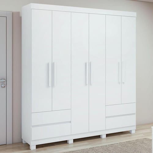 Precisando dar uma renovada no seu quarto? Que tal este Guarda-Roupa Zeus? Um móvel elegante, charmoso e amplo para você organizar e guardar os seus pertences. Confeccionado em materiais de ótima qualidade e resistência. O design moderno, proporcionando uma decoração sofisticada e agradável. Curtiu? Acabamento da Prateleira: Pintura Escala de Brilho da Prateleira: Fosco Possui Cabideiros: 02 Acabamento da Gaveta: Pintura Escala de Brilho da Gaveta: Fosco Possui Organizador de Gaveta: Não Acabamento da Porta: Pintura Escala de Brilho da Porta: Fosco Material do Puxador da Porta: MDF Acabamento dos Pés: Pintura Altura dos Pés: 7 Ambiente Principal: Quarto Complexidade da Montagem: Alta: deve ser montado por um montador especializado Cor: Branco Cor do Produto: Branco Escala de Brilho: Fosco Gaveta com Chave: Não Itens Inclusos: 1 Guarda roupa e manual de montagem. Linha ou Coleção: Zeus Manual de Montagem e Instalação: https://cdn2.madeiramadeira.com.br/atributo/mOveis-lopas/1684796-38986-420x400-manual-de-montagem-roupeiro-zeus-plus-6-pts.pdf Material da Gaveta: MDP Material da Porta: MDF Material da Prateleira: MDP Material dos Pés: PVC Material Principal: MDP modular: Não Necessita Montagem: Sim Origem do Produto: Nacional Peso: 100.28 Peso Máximo por Gaveta: 4 Peso Máximo por Prateleira: 6 Possui Calceiros: Não Possui Espelho: Não Possui Pés: 08 Possui Portas: Sim Possui Prateleiras: Sim Quantidade de Gavetas: 04 Gavetas Quantidade de Prateleiras: 06 Prateleiras Recomendações de Uso, Manutenção e Limpeza: Limpar somente com pano macio e seco, não colocar diretamente em incidência da luz solar, não colocar em lugar úmido. Sapatas Niveladoras: Não Sistema de Montagem: Parafusos e Cavilhas. Tipo de Corrediça da Gaveta: Metálica Telescópica Tipo de Dobradiça/Corrediça da Porta: Metálica Tipo de Gaveta: Externa Tipo de Guarda-Roupa: Casal Tipo de Puxador da Gaveta: Embutido Tipo de Puxador da Porta: Externo