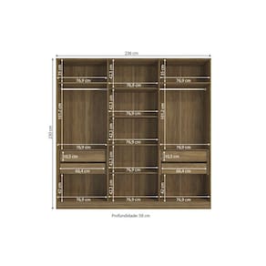 Para quem sempre sonhou com um quarto planejado, o Modulado Adapt da Kappesberg é a escolha ideal. Produzido em MDP, material de alta qualidade, o Roupeiro 6 portas N538 é ideal para quem busca por organização e uma melhor otimização do espaço. Espaçoso e muito versátil, ele garante beleza e funcionalidade, além de uma melhor organização. Com seis portas e uma divisão interna igual dos dois lados, ele conta com uma ótima distribuição de espaço entre prateleiras, gavetas e cabideiros, permitindo guardar calçados, peças de roupa dobradas ou penduradas em cabides, deixando seu espaço sempre organizado. E com pintura de sete camadas, ele conta com uma combinação de cores única, entre o nogueira, com pintura fosca e acabamento touch, e o branco, com acabamento em brilho, combinando facilmente com todos os ambientes, além de garantir a sensação de aconchego e conforto. Os destaques ficam por conta do sistema de amortecimento nas portas, proporcionando um fechamento suave e sem ruídos, do puxador em MDF, e da montagem interna ajustável, podendo ampliar a quantidade de gavetas ou prateleiras, completando os diferenciais do produto e deixando você com o quarto que sempre sonhou. Renove seu quarto com toda a qualidade e beleza que o Modulado Adapt da Kappesberg oferece e aproveite cada momento.