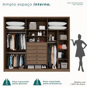 O Guarda-Roupa Anápolis 100% MDF Valverde Móveis, possui acabamento texturizado, moderno, encontrado apenas nas melhores fábricas de Minas. Este produto possui um contexto de conforto, qualidade e satisfação que atraem até os clientes mais exigentes, é um móvel conceitual e imponente, ele impressiona por sua grandiosidade, pelos espaços bem distribuídos e os detalhes pensados para atender as mais variadas necessidades do usuário, são eles: puxadores em MDF alongados com design moderno e funcional, portas com dobradiças slow 35 mm, cabideiros e calceiro metálicos, nichos central para acessórios, sapateiras e espaço para longos, gavetas com corrediças telescópicas e uma gaveta cofre com chave, para acomodar os seus pertences e proporcionar a melhor organização do espaço e segurança. Acabamento da Prateleira: Pintura UV Escala de Brilho da Prateleira: Super-Brilho Possui Cabideiros: Sim Acabamento da Gaveta: Pintura UV Possui Organizador de Gaveta: Não Acabamento da Porta: Pintura UV Escala de Brilho da Porta: Super-Brilho Ambiente Principal: Quarto codigo_ean: 7900288352514 Complexidade da Montagem: Alta: deve ser montado por um montador especializado Cor: New Canion Cor do Produto: New Canion Escala de Brilho: Semi-Brilho Espessura da Estrutura (mm): 15 mm Espessura das Portas (mm): 15 mm Espessura das Prateleiras (mm): 15 mm Espessura do Fundo (mm): 3 mm Espessura do Fundo das Gavetas (mm): 3 mm Informações Complementares: Porta Ripada Itens Inclusos: 1 Guarda Roupa, kit ferragens e manual de montagem Linha ou Coleção: Anápolis Manual de Montagem e Instalação: https://product-hub-prd.madeiramadeira.com.br/399346554/documents/c1b457bc-af72-4106-9953-c89963fc36043441583352817732566213557.pdf Marca: Valverde Móveis Material da Gaveta: MDF Material da Porta: MDF Material da Prateleira: MDF Material Principal: MDF modular: Não Montagem Flex: Sim, o cliente tem a opção de montar o interno de 2 formas. Necessita Montagem: Sim Origem do Produto: Nacional Peso: 241,6 kg Peso Máximo por Gaveta: 5 kg Peso Máximo por Prateleira: 3 kg Possui Calceiros: Não Possui Espelho: Não Possui Pés: Não Possui Portas: Sim Possui Prateleiras: Sim Produto Montado: Sim Quantidade de Gavetas: 06 Gavetas Recomendações de Uso, Manutenção e Limpeza: Limpar com flanela ou pano macio seco. Não utilizar produtos abrasivos. Não expor o produto diretamente à luz solar e à umidade. Sistema de Montagem: Parafusos, Cavilhas e Puxadores. Tipo de Corrediça da Gaveta: Metálica Telescópica Tipo de Dobradiça/Corrediça da Porta: Metálica Tipo de Gaveta: Interna Tipo de Guarda-Roupa: Casal Tipo de Puxador da Gaveta: Externo Tipo de Puxador da Porta: Externo