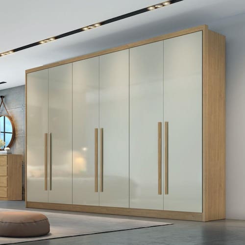 100% MDF, PUXADORES COM ACABAMENTO AMADEIRADO, COLUNADO EM 25MM, INTERNO ELE E ELA, GAVETAS INTERNAS COM PUXADORES, ESPAÇO PARA LONGO, DOBRADIÇA DE PRESSÃO DE 35MM, CORREDIÇAS TELESCÓPICAS, CABIDEIROS E CALCEIRO EM ALUMÍNIO. Acabamento da Prateleira: Pintura Texturizada UV Escala de Brilho da Prateleira: Fosco Possui Cabideiros: Sim Acabamento da Gaveta: Pintura Texturizada UV Escala de Brilho da Gaveta: Fosco Material do Puxador da Gaveta: ABS Possui Organizador de Gaveta: Não Acabamento da Porta: Pintura Texturizada UV Escala de Brilho da Porta: Brilhante Material do Puxador da Porta: MDF Ambiente Principal: Quarto codigo_ean: 7908308742277 Complexidade da Montagem: Média: pode ser montado por mais de uma pessoa e/ou necessite de maior conhecimento para montagem Cor: Cumaru Cinza Cor do Produto: Cumaru Cinza Cor Interna: Cumaru Escala de Brilho: Fosco Itens Inclusos: 1 Guarda-Roupa, Kit Ferragens e Manual de Montagem Linha ou Coleção: Reno Manual de Montagem e Instalação: https://product-hub-prd.madeiramadeira.com.br/832822/documents/3b89c856-4022-467d-95e3-2356a057d7daanualguardarouparobustplus.pdf Material da Gaveta: MDF Material da Porta: MDF Material da Prateleira: MDF Material Principal: MDF Necessita Montagem: Sim Origem do Produto: Nacional Peso: 224 kg Peso Máximo por Gaveta: 5 kg Peso Máximo por Prateleira: 10 kg Possui Calceiros: 01 Possui Espelho: Não Possui Pés: Não Possui Portas: Sim Produto Montado: Sim Recomendações de Uso, Manutenção e Limpeza: Limpar com flanela ou pano macio seco, não utilizar produtos abrasivos, desengordurantes, álcool ou solvente. Não expor o produto diretamente à luz solar e à umidade. Sistema de Montagem: Parafuso, Cavilha e Prego Tipo de Corrediça da Gaveta: Metálica Telescópica Tipo de Dobradiça/Corrediça da Porta: Metálica Tipo de Gaveta: Interna Tipo de Guarda-Roupa: Casal Tipo de Puxador da Gaveta: Externo Tipo de Puxador da Porta: Externo