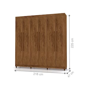 Produzido em MDP, 6 Portas, 2 Gavetas internas com corrediças metálicas., Cabideiro e calceiro em alumínio, Pés de madeira opcional na montagem, Puxadores em MDF com design moderno