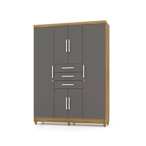 Produzido em MDP, 6 Portas, 3 Gavetas internas com corrediças metálicas., Cabideiro e calceiro em alumínio, Pés de madeira opcional na montagem.