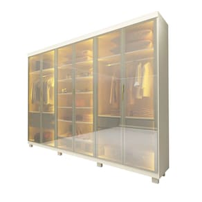Guarda Roupa 6 Portas Casal Reflecta LED Imperatriz Off White - Gelius