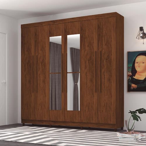 Produzido em MDP, o Guarda Roupa conta com 6 Portas, 2 Gavetas internas com corrediças metálicas, Cabideiro e calceiro em alumínio, Pés de madeiraopcional na montagem, Puxadores em MDF com design moderno.