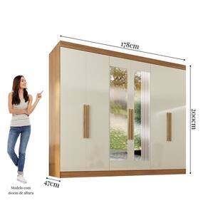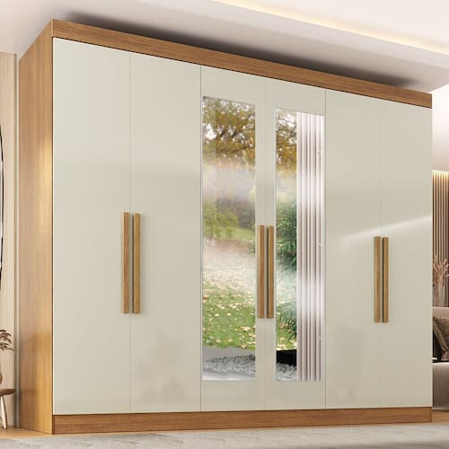 O guarda roupa Paris 6 portas é ideal para quem procura espaço e versatilidade, tornado seu ambiente ainda mais moderno e aconchegante Acabamento da Prateleira: Pintura Escala de Brilho da Prateleira: Fosco Possui Cabideiros: Sim Acabamento da Gaveta: Pintura Possui Organizador de Gaveta: Não Acabamento da Porta: Pintura UV Escala de Brilho da Porta: Brilhante Altura do Espelho: 48 cm Ambiente Principal: Quarto codigo_ean: 7900288246851 Complexidade da Montagem: Média: pode ser montado por mais de uma pessoa e/ou necessite de maior conhecimento para montagem Cor: Cinamomo/Off White Cor do Produto: Cinamomo/Off White Cor Interna: Cinza Escala de Brilho: Super Brilho Espessura da Estrutura (mm): 12 mm Espessura das Portas (mm): 15 mm Espessura das Prateleiras (mm): 12 mm Espessura do Espelho: 3 mm Espessura do Fundo (mm): 3 mm Espessura do Fundo das Gavetas (mm): 3 mm Formato do Espelho: Retangular Itens Inclusos: 1 Guarda-Roupa, Kit Ferragens e Manual de Montagem Largura do Espelho: 25 cm Linha ou Coleção: Paris Manual de Montagem e Instalação: https://product-hub-prd.madeiramadeira.com.br/346784396/documents/87777811-0c03-4cfb-80b4-909419d3a9e63248775286417592357019015.pdf Marca: Maxel Material da Gaveta: MDP Material da Porta: MDP Material da Prateleira: MDP Material Principal: MDP modular: Não Necessita Montagem: Sim Origem do Produto: Nacional Peso: 104,7 kg Peso Máximo por Gaveta: 3 kg Peso Máximo por Prateleira: 7 kg Possui Calceiros: 01 Possui Espelho: Sim Possui Pés: Não Possui Portas: Sim Possui Prateleiras: Sim Produto Montado: Sim Quantidade de Espelho: 06 Espelhos com Tamanhos Iguais Quantidade de Gavetas: 02 Gavetas Quantidade de Prateleiras: 05 Prateleiras Recomendações de Uso, Manutenção e Limpeza: Pano seco ou levemente umedecido, não usar produtos abrasivos Sistema de Montagem: Parafusos, cavilhas, pregos e dispositivos plásticos. Tipo de Corrediça da Gaveta: Metálica Telescópica Tipo de Dobradiça/Corrediça da Porta: Metálica Tipo de Fixação do Espelho: Parafusos Tipo de Gaveta: Interna Tipo de Guarda-Roupa: Casal Tipo de Puxador da Gaveta: Não Possui Tipo de Puxador da Porta: Externo