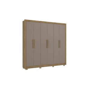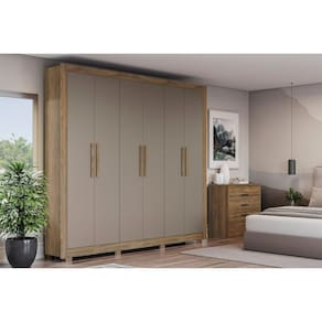 Seu quarto mais lindo e moderno com o Roupeiro CB01M569 da Kappesberg. Com seis portas, são 2,23m de altura, 2,32m de largura e 47cm de profundidade, todo produzido em chapa MDP de 15mm, o que garante mais robustez e qualidade. Com sete camadas de pintura, na parte interna e externa, a caixaria possui pintura touch na cor nogueira, e as portas, na cor cinza, possuem acabamento fosco. Uma combinação marcante e moderna, garantindo destaque ao seu espaço. O destaque fica por conta dos espelhos, dos puxadores em madeira e da moldura, deixando-o mais sofisticado. Na parte interna, ele possui nichos de tamanhos diferentes, cabideiros metálicos com suporte interno, e duas gavetas com corrediças metálicas, deixando tudo organizado. Os espelhos e pés em polipropileno completam o design do produto.
