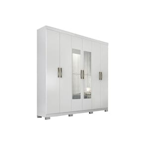 Guarda Roupa 6 Portas E 3 Gavetas C/ Espelho Clara Branco - Panan