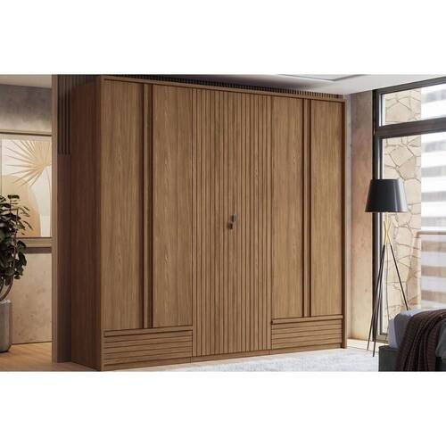 Tipo de Cabideiro - Aéreo Material dos Cabideiros - Cabideira Metálico Tipo de Porta do Guarda-Roupa - Portas de Bater Material das Portas - Portas em MDP Tipo de Dobradiças - Dobradiças Metálicas Diferenciais das Portas - Portas Ripadas Quantidade de Portas - 6 Portas de Abrir Material das Gavetas - Gavetas em MDP Tipo de Corrediça - c/ Corrediças Telescópicas Quantidade de Gavetas - 5 Material de Estrutura Fundo Gaveta - Em HDF Material das Prateleiras - Prateleiras em MDP Quantidade de Prateleiras - 5 Quantidade de Nichos - 1 Nicho