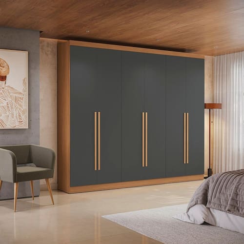 Guarda-roupa 6 Portas e 3 Gavetas Dormitorio Bigger Lo Canela/Grafite - Cinza