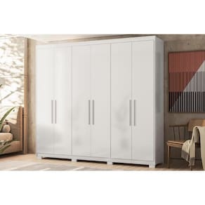 Tipo de Cabideiro - Aéreo Material dos Cabideiros - Cabideira Metálico Tipo de Porta do Guarda-Roupa - Portas de Bater Material das Portas - Portas em MDF Tipo de Dobradiças - Dobradiças Metálicas Quantidade de Portas - 6 Portas de Abrir Material das Gavetas - Gavetas em MDF Tipo de Corrediça - c/ Corrediças Telescópicas Quantidade de Gavetas - 4 Gavetas Tipo dos Pés - ABS/PVC Quantidade de Pés - 8 pés Material das Prateleiras - Prateleiras em MDF Quantidade de Prateleiras - 3 Quantidade de Nichos - 1 Nicho