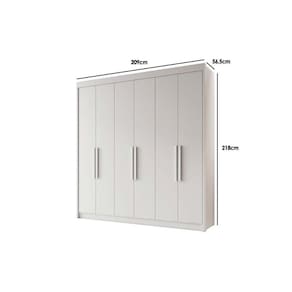 Tipo de Cabideiro - Aéreo Material dos Cabideiros - Cabideira Metálico Tipo de Porta do Guarda-Roupa - Portas de Bater Material das Portas - Portas em MDF Tipo de Dobradiças - Dobradiças Metálicas Quantidade de Portas - 6 Portas de Abrir Material das Gavetas - Gavetas em MDF Quantidade de Gavetas - 4 Gavetas Material das Prateleiras - Prateleiras em MDF Quantidade de Prateleiras - 5 Quantidade de Nichos - 2 Nichos