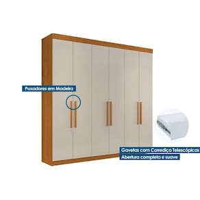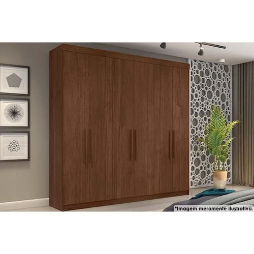 Tipo de Cabideiro - Aéreo Material dos Cabideiros - Cabideira Metálico Tipo de Porta do Guarda-Roupa - Portas de Bater Material das Portas - Portas em MDP Tipo de Dobradiças - Dobradiças Metálicas Quantidade de Portas - 6 Portas de Abrir Material das Gavetas - Gavetas em MDP Quantidade de Gavetas - 4 Gavetas Quantidade de Prateleiras - 5 Quantidade de Nichos - 6 Nichos