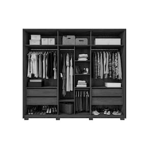 Material de Estrutura - MDF/MDP Tipo de Pintura - Ultravioleta Tipo de Acabamento da Pintura - Semi Brilho Diferenciais Guarda Roupas - Calceiro - Sapateira - Maleiro - Divisão Ele/Ela - Possui Espaço para Vestidos Longos