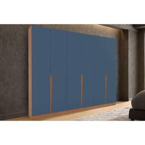 Guarda Roupa Casal 6 Portas e 4 Gavetas Porto Freijo/Azul - Politorno