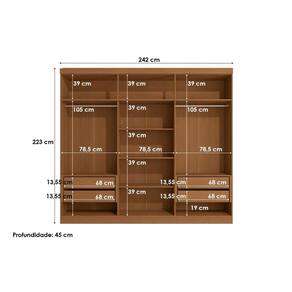 Dimensões(Cm): Comprimento(Profundidade): 47cm x Largura: 242cm x Altura: 218cm