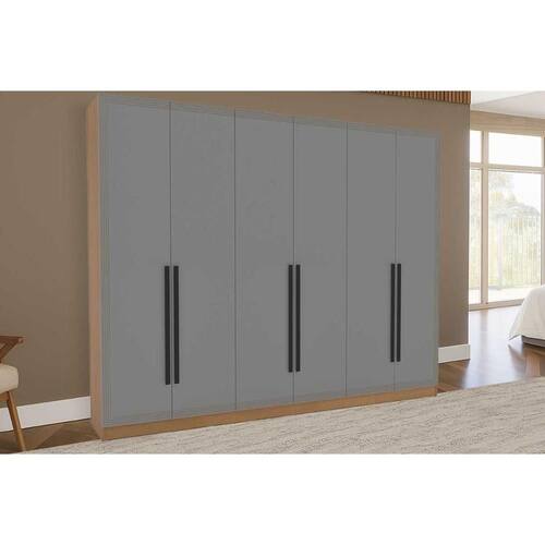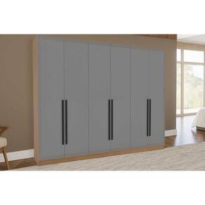 Guarda Roupa 6 Portas e 4 Gavetas Valência Freijo/Cinza - Politorno - Blush