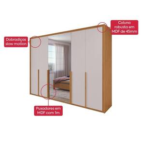 Marca: Lopas | Modelo: Easy Space | Cor: Amendoa Clean/Off White | Tipo de guarda roupa: Casal | Quantidade de portas: 6 | Altura: 2400 | Largura: 2740 | Peso do produto: 302 | Com espelho: Sim