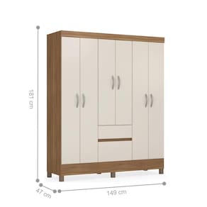 PRODUTO PRECISA DE MONTAGEM?: Sim, a montagem é simples mas sugerimos a contratação do nosso de montagem (para os CEPs em que o está disponível) ou de algum experiente de sua preferência | ALTURA DO PRODUTO (CM): 181 | LARGURA DO PRODUTO (CM): 149 | COMPRIMENTO DO PRODUTO (CM): 47 | COMPRIMENTO PRODUTO COM EMBALAGEM (CM): 176 | PESO PRODUTO COM EMBALAGEM (KG): 62,8 | ALTURA DO PRODUTO COM EMBALAGEM (CM): 15 | DESCRIÇÃO DO TAMANHO: Altura: 181 cm, Largura: 149 cm, Profundidade 47 cm | MATERIAL PARA FILTRO: MDP | CORES DO PRODUTO (FILTRO DE CORES): Amêndoa | LARGURA PRODUTO COM EMBALAGEM (CM): 51 | ESTADO DE ORIGEM: PR | MATERIAL PRINCIPAL: MDP | CONTEÚDO DA EMBALAGEM: 1 Guarda Roupa | COR PREDOMINANTE: Amêndoa | INSTRUÇÕES/CUIDADOS: Limpar com pano macio e seco, não utilizar produtos abrasivos. | MODELO: Guarda Roupa 6 Portas Forggia Amendola Off-White | PESO DO PRODUTO (KG): 62