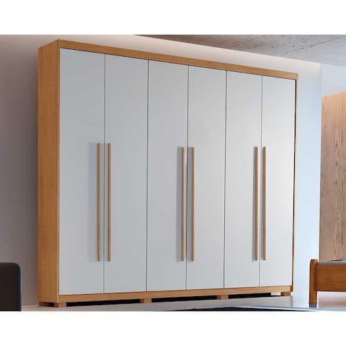Guarda Roupa 6 Portas Hawaii E 2 Gavetas C/ Pés Naturale/off White - Rufato