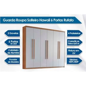 Guarda Roupa Solteiro 6 Portas e 2 Gavetas Hawaii Naturale/Off White - Rufato