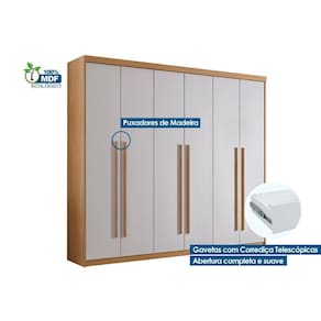 Guarda Roupa 6 Portas Hawaii e 2 Gavetas Naturale/Off White - Rufato - Blush