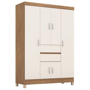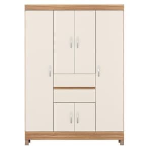 Produzido em MDP. Acompanha cabideiros em madeira, puxadores cromados e pés em PVC