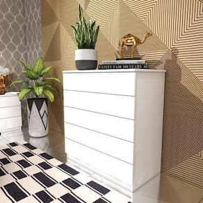 1x Cômoda 5 Gavetas 868cm x 925cm Florença Branco/Neve Largura: 86 cm Altura: 92 cm Peso: 33 kg Profundidade: 45 cm Necessita Montagem: Sim