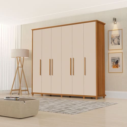 Itens Inclusos: 1 Guarda roupa com 6 portas - 6 gavetas.