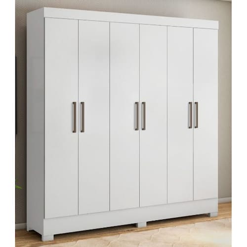 Guarda Roupa Casal Prático 6 Portas - DemóbileO Guarda-Roupa Prático possui uma estrutura compacta, puxadores que acompanham as cores do produto e neutralidade para compor em diferentes estilos de dormitórios. Distribuição interna completa, com gavetas que acompanham corrediças metálicas, prateleiras amplas e cabideiros. O Guarda-Roupa Prático conta com um excelente design que proporcionará ao seu quarto um estilo único.ESPECIFICAÇÕES:• Estrutura em MDP• Pintura UV• 6 Portas• Dobradiças metálicas• 3 Gavetas internas• Corrediças metálicas• 3 Cabideiros metálicos• Interna com prateleiras• Puxadores ABS na cor bronze• Pés quadrados em PVCDimensões:Tamanho do Produto (L x A x P): 201 x 212 x 47 cmGarantia: 3 mesesMontagem: O Produto vai desmontado com manual e todos acessórios. Recomendamos que a montagem seja feita por um profissionalRecomendação de Limpeza: Utilize pano levemente úmido Marca: Não Informado