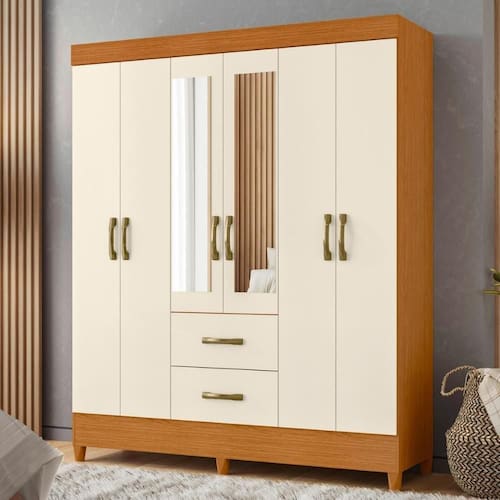 O Guarda- Roupa tem um modelo moderno o que trás elegancia para seu quarto além de um amlpo espaço interno.