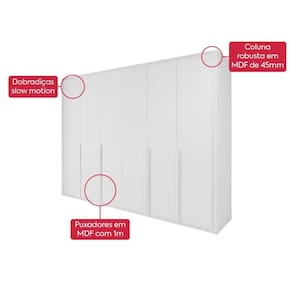 Marca: Lopas | Modelo: Easy Space | Cor: Branco | Tipo de guarda roupa: Casal | Quantidade de portas: 6 | Altura: 2400 | Largura: 2740 | Peso do produto: 302 | Com espelho: Não