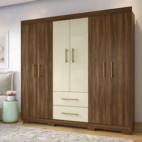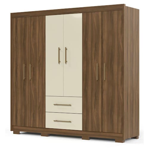 Guarda-Roupa 6 Portas Viena Nogueira com Off White - Gelius Móveis - Marrom