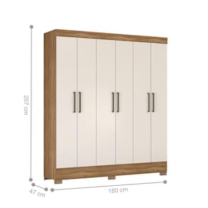 Produzido em MDP. Acompanha cabideiros em alumínio, puxadores em plástico ABS na cor bronze, pés em PVC