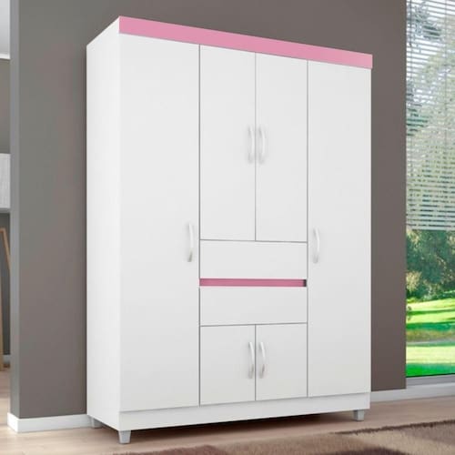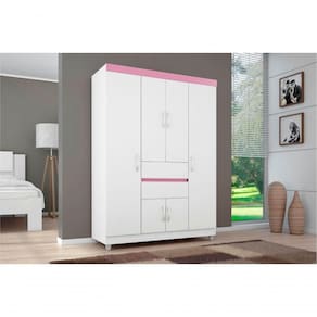 Guarda Roupa 6p Dresden Branco/rosa/branco O Guarda Roupa é a escolha certa para o seu quarto, com amplo espaço para roupas