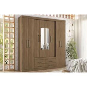 Guarda Roupa Casal 8 Portas (2 c/ Espelho) e 4 Gavetas Nápoles Jatobá - Santos Andirá