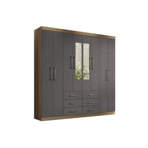Guarda Roupa 8 Portas (2 C/ Espelho) E 6 Gavetas Liverpool Jatobá/grafite - Santos Andirá