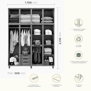 Conteúdo da Embalagem: 1 Guarda-Roupa, manual de montagem e Kit Ferragem