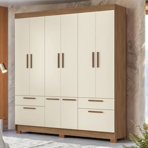 de preservação do meio ambiente. Acabamento da Prateleira: Pintura UV Escala de Brilho da Prateleira: Fosco Possui Cabideiros: Sim Acabamento da Gaveta: Verniz Escala de Brilho da Gaveta: Fosco Material do Puxador da Gaveta: MDF Possui Organizador de Gaveta: Não Acabamento da Porta: Verniz Escala de Brilho da Porta: Fosco Material do Puxador da Porta: MDF Acabamento dos Pés: Poliéster Altura do Espelho: 95 cm Altura dos Pés: 5 cm Altura Máxima dos Pés: 5.0000 Ambiente Principal: Quarto codigo_ean: 7900288097675 Complexidade da Montagem: Média: pode ser montado por mais de uma pessoa e/ou necessite de maior conhecimento para montagem Cor: Jatobá/ Areia Cor do Produto: Jatobá/ Areia Cor do Puxador: Marrom Cor Interna: Jatobá Escala de Brilho: Fosco Espessura da Estrutura (mm): 12 mm Espessura das Portas (mm): 12 mm Espessura das Prateleiras (mm): 12 mm Espessura do Espelho: 3 mm Espessura do Fundo (mm): 2,5 mm Espessura do Fundo das Gavetas (mm): 2,5 mm Fita Integrada: Sim Formato do Espelho: Retangular Gaveta com Chave: Não Guarda-Roupa Suporta Até (kg): 86 kg Itens Inclusos: 1 Guarda Roupa, +2 Kit Ferragens, +1 Manual em PDF Largura do Espelho: 23 cm Linha ou Coleção: Linha Paraná Manual de Montagem e Instalação: https://product-hub-prd.madeiramadeira.com.br/982369/documents/426bb053-b718-4f4b-ba2f-16188199121386881742587500982369150731.pdf Marca: Santos Andirá Material da Gaveta: MDP Material da Porta: MDP Material da Prateleira: MDP Material dos Pés: PVC Material Principal: MDP modular: Não Necessita Montagem: Sim Nicho com Cabideiro: Não Origem do Produto: Nacional Peso: 108,45 kg Peso Máximo por Gaveta: 3 kg Peso Máximo por Prateleira: 8 kg Porta Janelada: Não Possui Espelho: Sim Possui Pés: 06 Possui Portas: Sim Possui Prateleiras: Sim Produto Montado: Sim Quantidade de Cabideiros: 02 Cabideiros Quantidade de Espelho: 02 Espelhos com Tamanhos Iguais Quantidade de Gavetas: 04 Gavetas Quantidade de Portas com Espelhos: 2 Portas com Espelho Quantidade de Prateleiras: 05 Prateleiras Recomendações de Uso, Manutenção e Limpeza: Durabilidade: Permite ser desmontado e montado até cinco vezes. 5 – Manutenção: Não limpar com álcool ou qualquer outro produto químico, utilize somente pano seco ou levemente umedecido. Sapatas Niveladoras: Não Sistema de Montagem: Parafusos, Cavilha, Minifix Tipo de Corrediça da Gaveta: Metálica Telescópica Tipo de Dobradiça/Corrediça da Porta: Metálica Tipo de Fixação do Espelho: Fita Dupla Face Tipo de Gaveta: Externa Tipo de Guarda-Roupa: Casal Tipo de Puxador da Gaveta: Externo Tipo de Puxador da Porta: Externo
