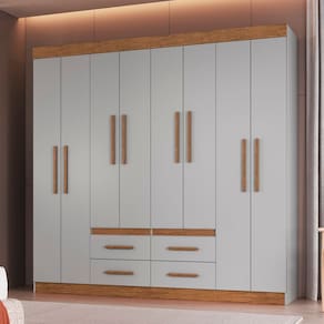 Enorme é a palavra para o guarda roupas Las Vegas 8 portas, desenvolvido todo em MDF, o produto possui 8 portas de abrir com um amplo espaço interno, 4 gavetas com corrediças telescópicas, cabideiro revestido, interno todo pintado.